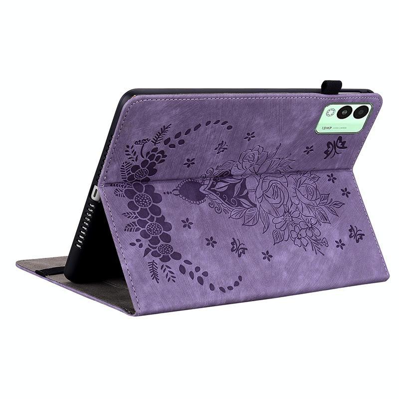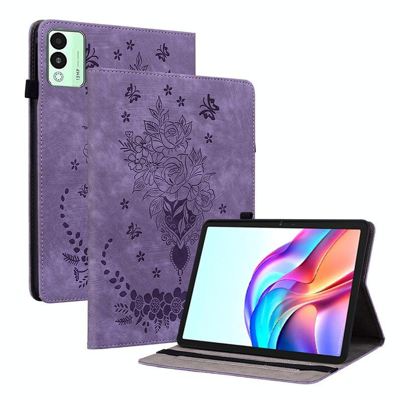 For Tecno Megapad 11 Butterfly Rose Embossed Leather Tablet Case(Purple)