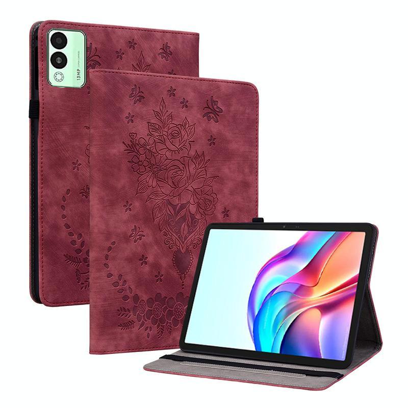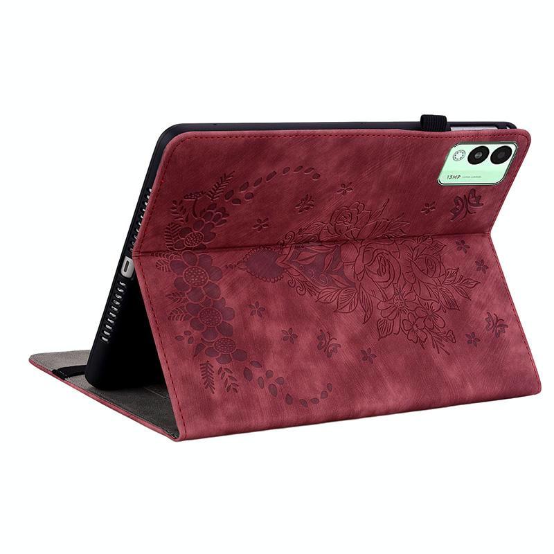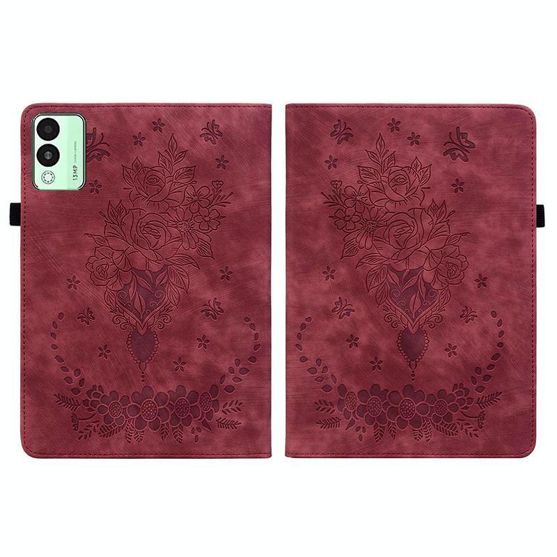 For Tecno Megapad 11 Butterfly Rose Embossed Leather Tablet Case(Red)