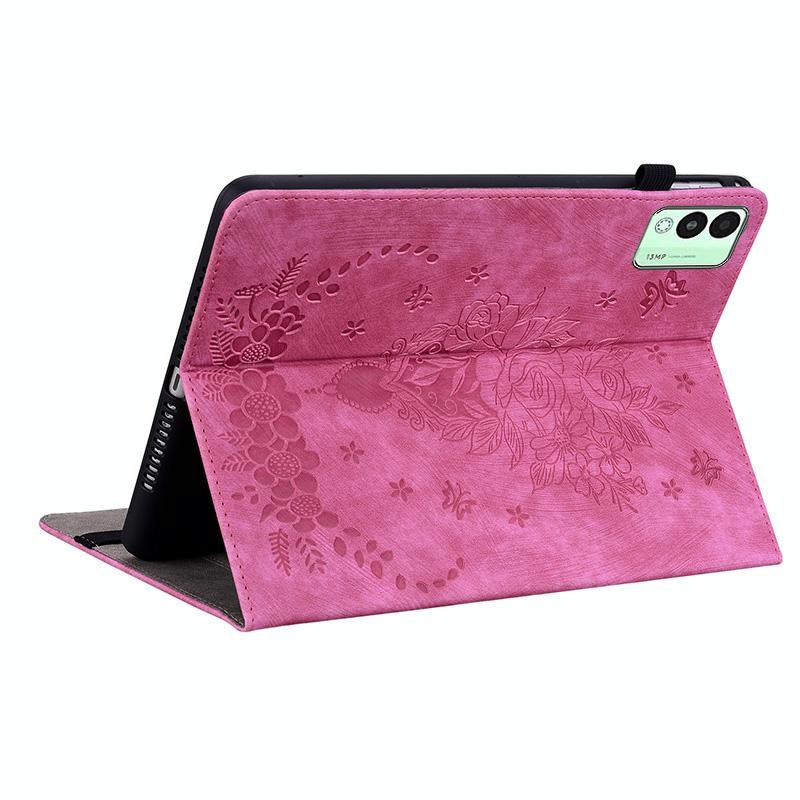 For Tecno Megapad 11 Butterfly Rose Embossed Leather Tablet Case(Rose Red)