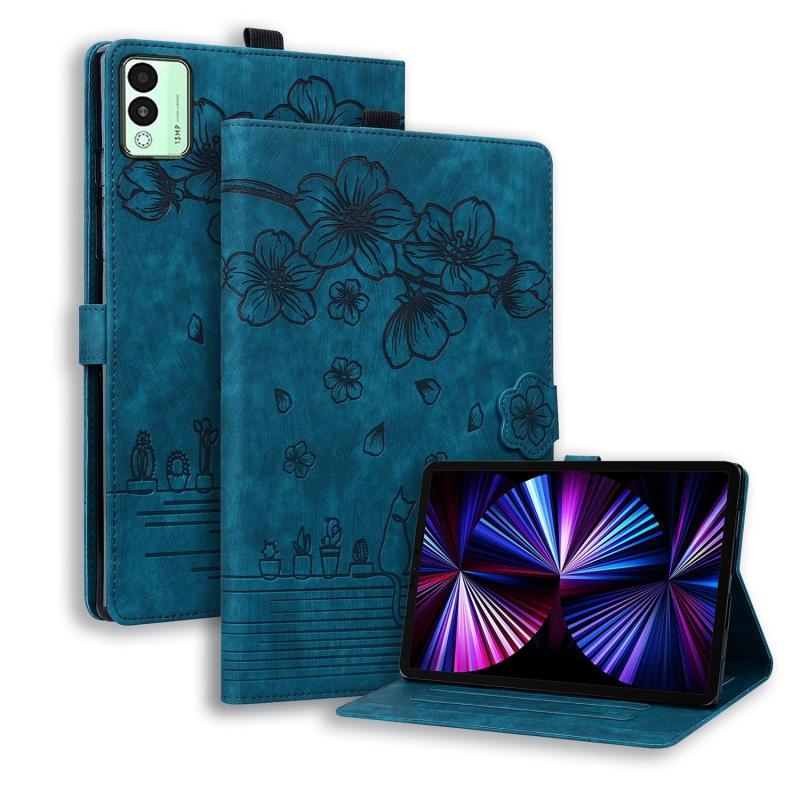 For Tecno MegaPad 11 Cartoon Sakura Cat Embossed Leather Tablet Case(Blue)
