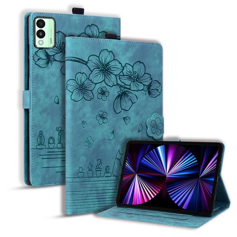 For Tecno MegaPad 11 Cartoon Sakura Cat Embossed Leather Tablet Case(Green)