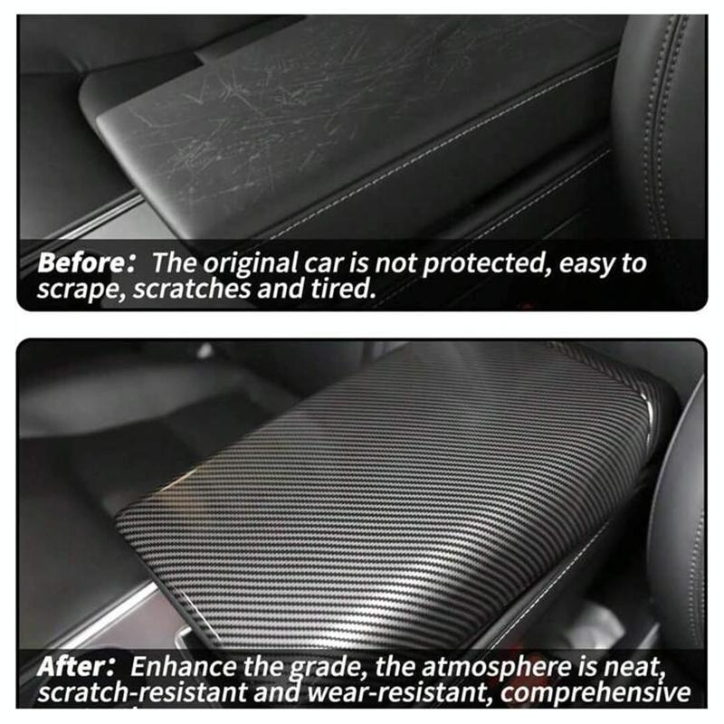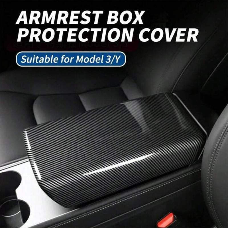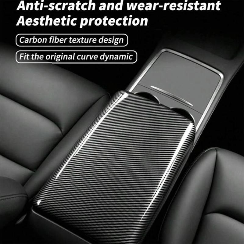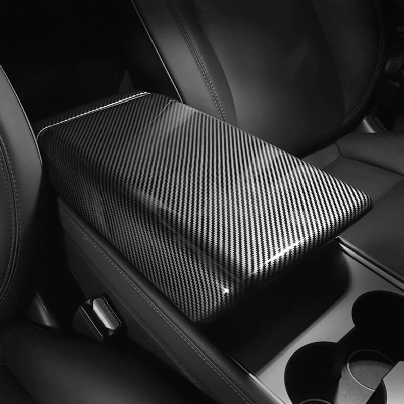For Tesla Model 3 / Y Car Center Console Armrest Box Carbon Fiber Pattern Protective Cover