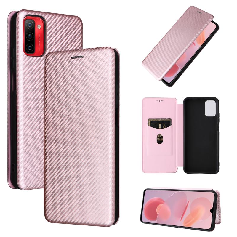 For Ulefone Note 12P Carbon Fiber Texture Horizontal Flip PU Phone Case(Pink)