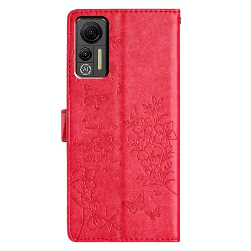 For Ulefone Note 14 Butterflies and Flowers Leather Phone Case(Red)