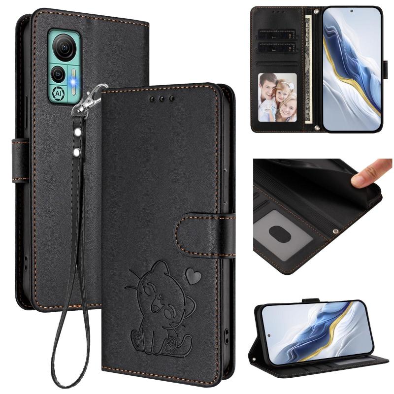 For Ulefone Note 14 Embossed Heart Cat Leather Phone Case with Hand Strap(Black)