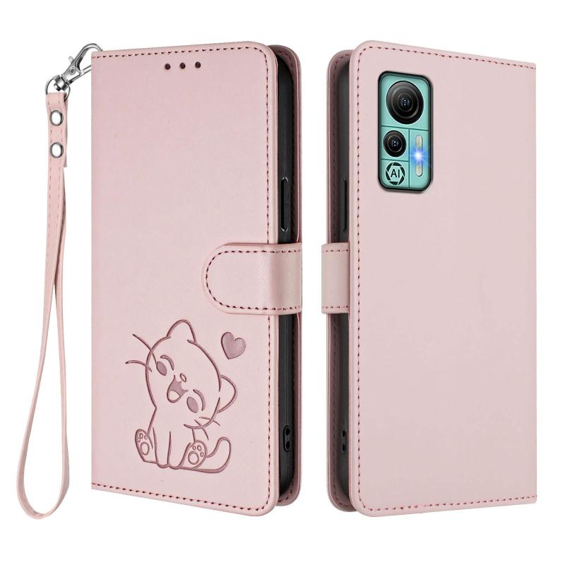 For Ulefone Note 14 Embossed Heart Cat Leather Phone Case with Hand Strap(Pink)