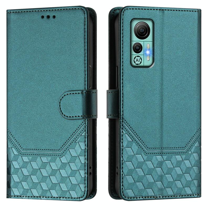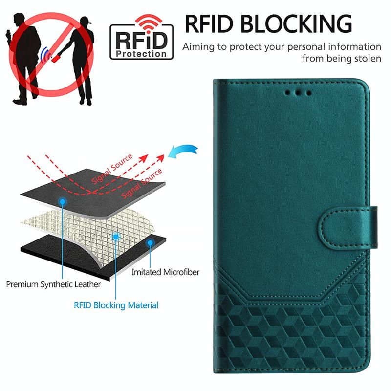 For Ulefone Note 14 Honeycomb Embossing RFID Leather Phone Case(Peacock Green)
