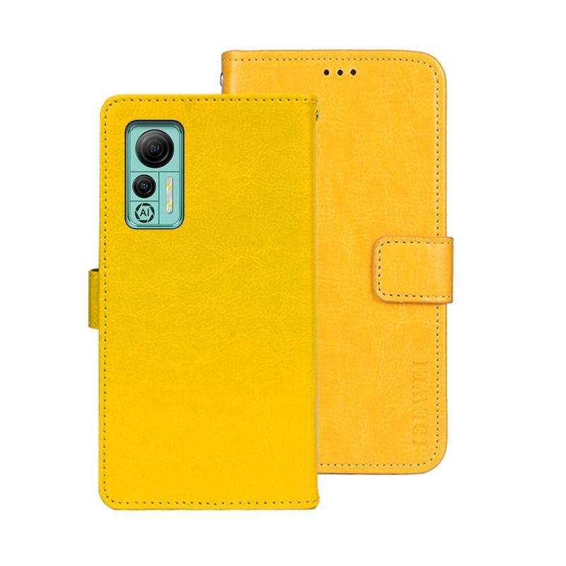For Ulefone Note 14 idewei Crazy Horse Texture Leather Phone Case with Holder(Yellow) (idewei)