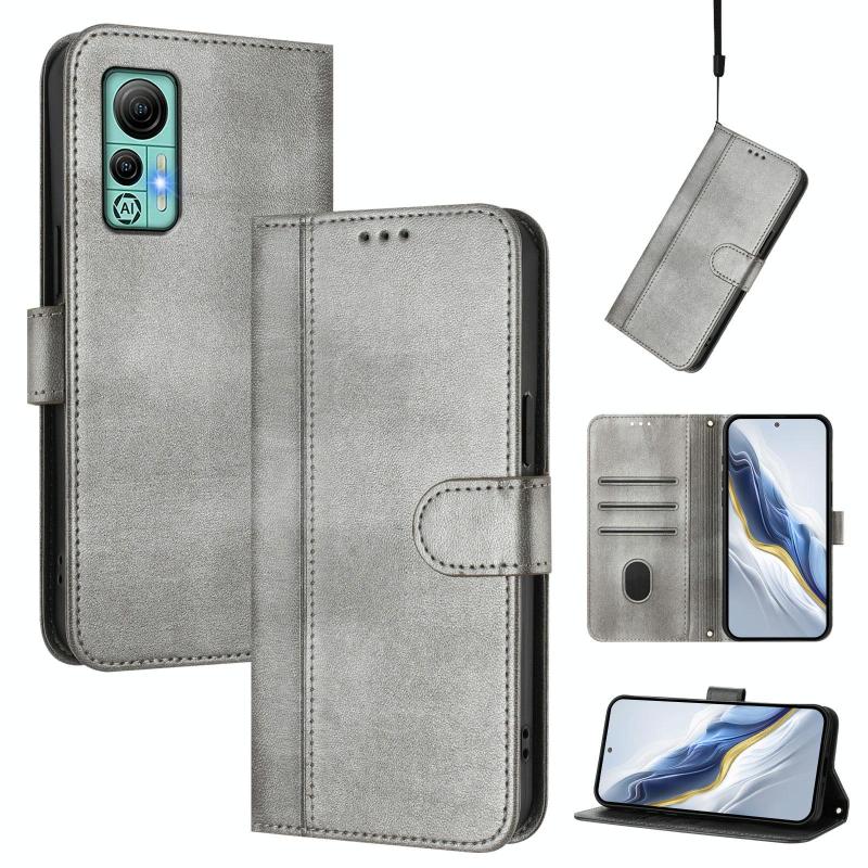 For Ulefone Note 14 Line Splicing Buckle Retro Leather Phone Case(Grey)