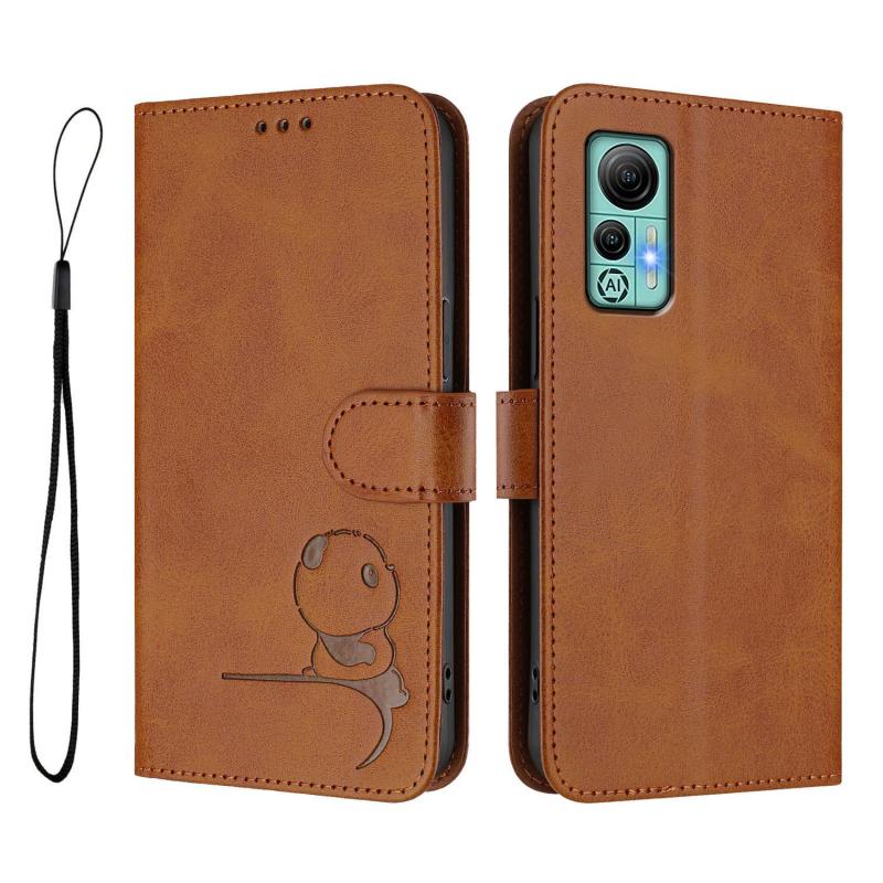 For Ulefone Note 14 Litter Panda Embossing RFID Leather Phone Case with Lanyard(Brown)