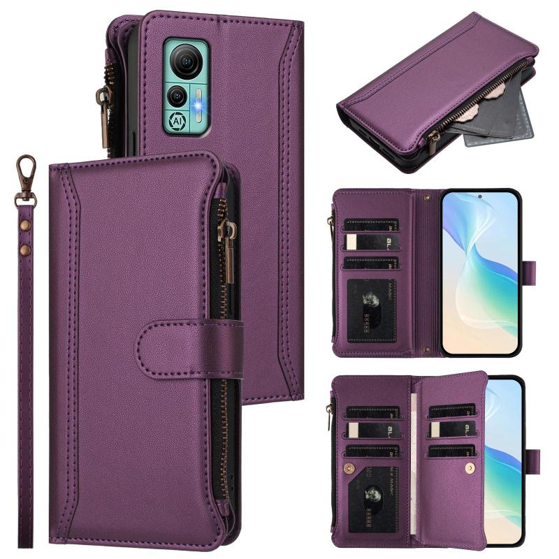 For Ulefone Note 14 Magnetic Closure 9 Card Slots Zipper Leather Case with Hand Strap(Purple)