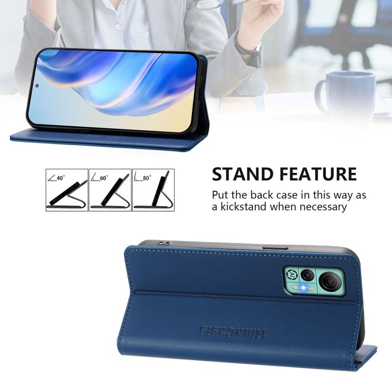 For Ulefone Note 14 RC01 Dual-Folded Magnetic Suction RFID Leather Phone Case(Dark Blue)