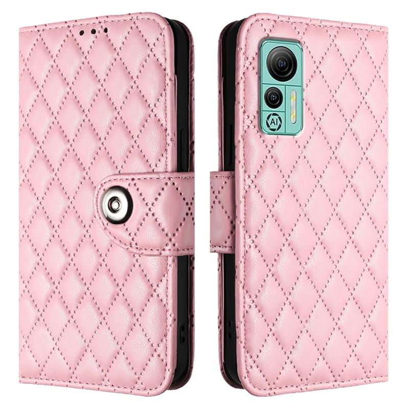 For Ulefone Note 14 Rhombic Texture Flip Leather Phone Case with Lanyard(Pink)