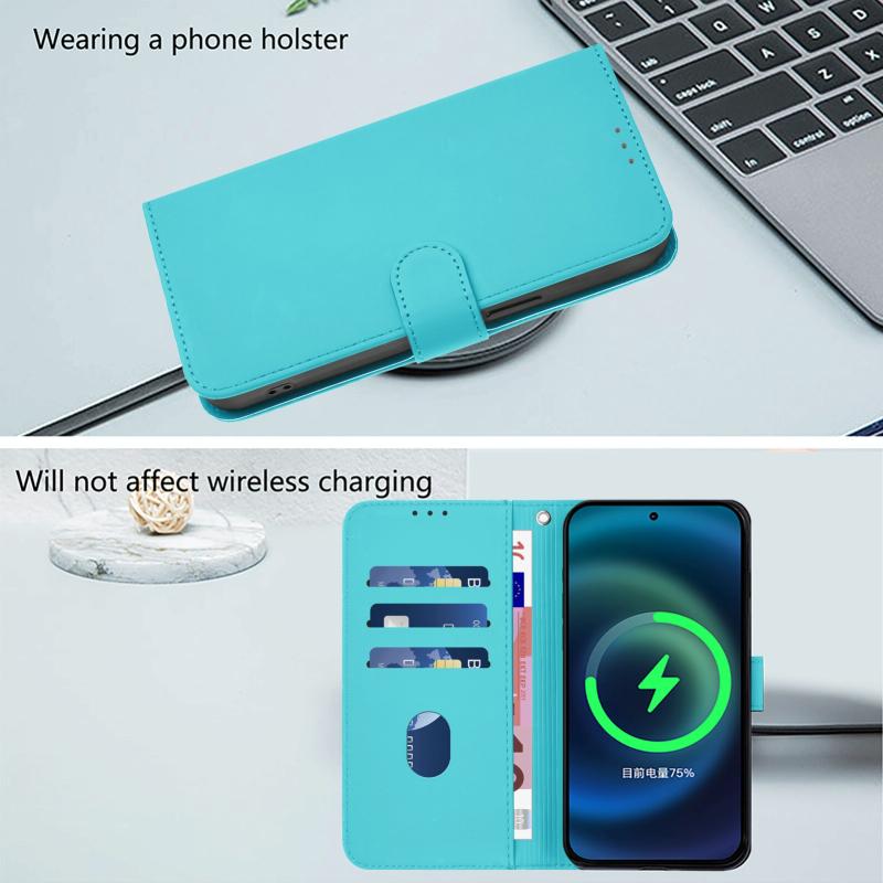 For Ulefone Note 14 Skin Feel Solid Color Leather Phone Case with Lanyard(Lake Blue)