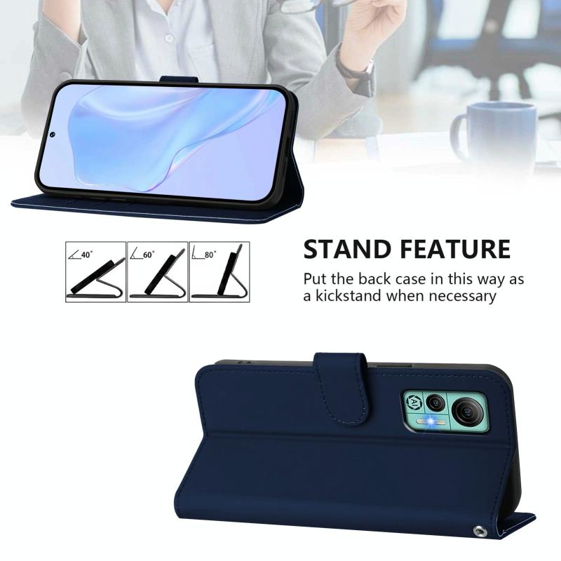 For Ulefone Note 14 Skin Feel Solid Color Leather Phone Case with Lanyard(Navy Blue)
