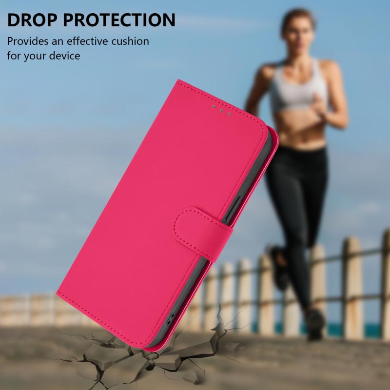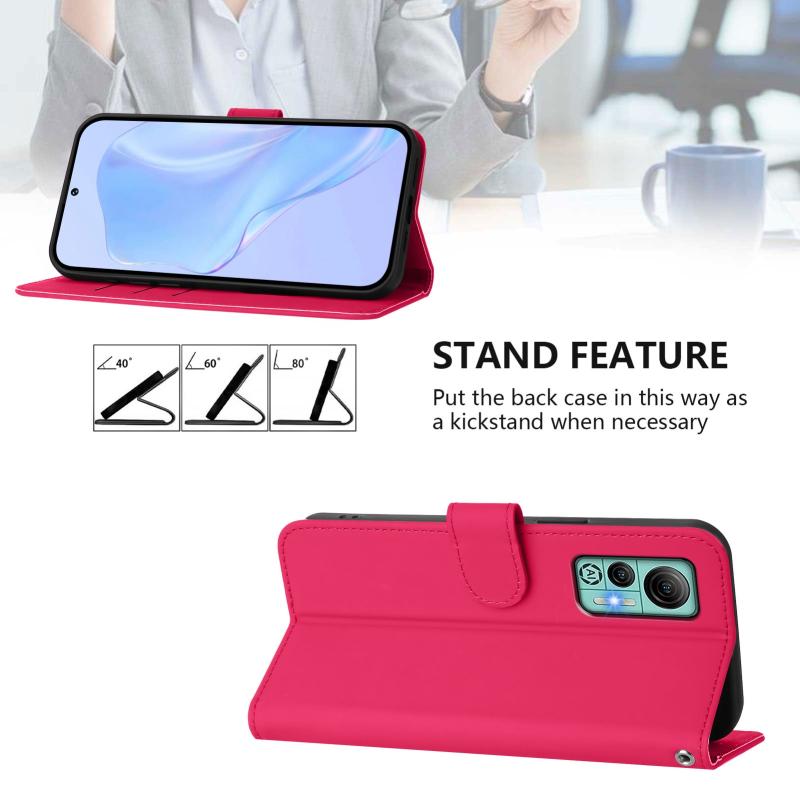 For Ulefone Note 14 Skin Feel Solid Color Leather Phone Case with Lanyard(Rose Red)