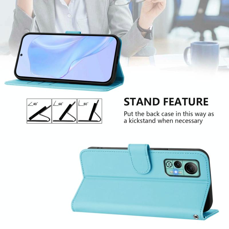 For Ulefone Note 14 Skin Feel Solid Color Leather Phone Case with Lanyard(Sky Blue)