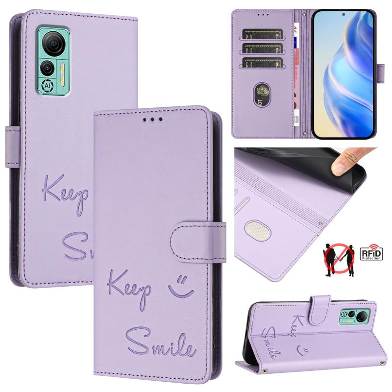For Ulefone Note 14 Smile Embossing RFID Leather Phone Case(Light Purple)