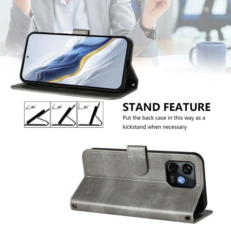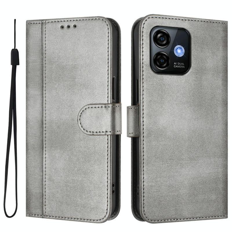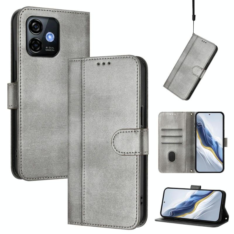 For Ulefone Note 16 Pro Line Splicing Buckle Retro Leather Phone Case(Grey)