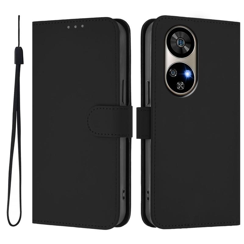 For Ulefone Note 17 Pro Skin Feel Solid Color Leather Phone Case with Lanyard(Black)