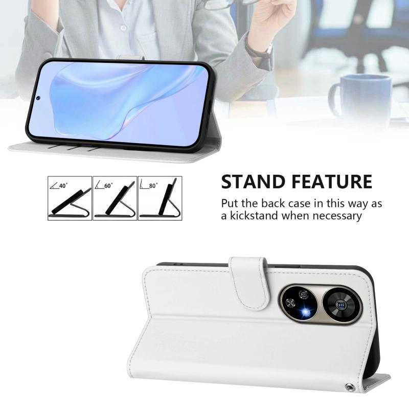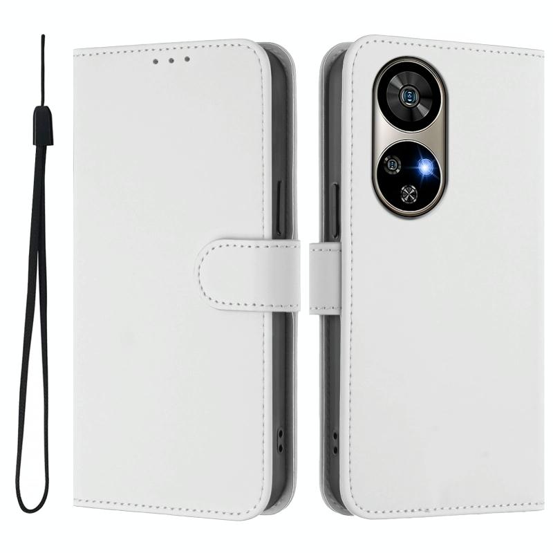 For Ulefone Note 17 Pro Skin Feel Solid Color Leather Phone Case with Lanyard(White)