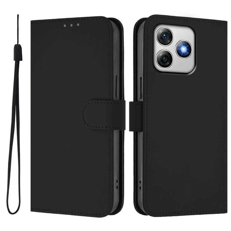 For Ulefone Note 18 Ultra Skin Feel Solid Color Leather Phone Case with Lanyard(Black)