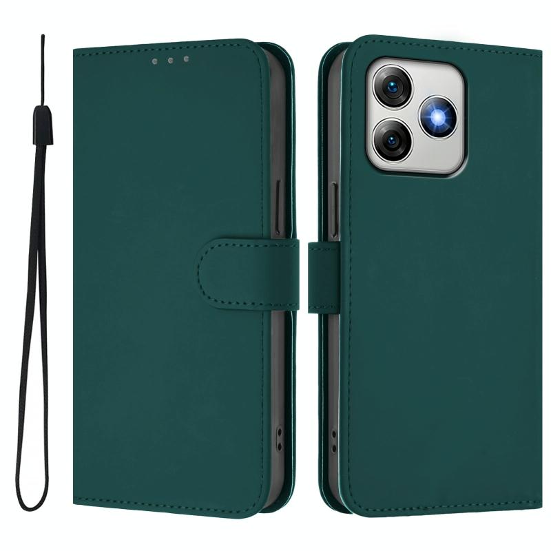 For Ulefone Note 18 Ultra Skin Feel Solid Color Leather Phone Case with Lanyard(Dark Green)