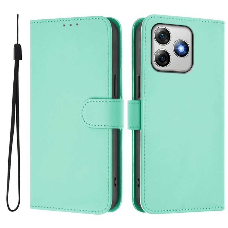 For Ulefone Note 18 Ultra Skin Feel Solid Color Leather Phone Case with Lanyard(Mint Green)