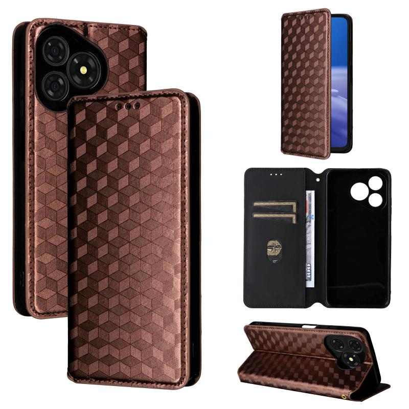 For Ulefone Note 19 Cubic Grid Texture Flip Leather Phone Case(Brown)