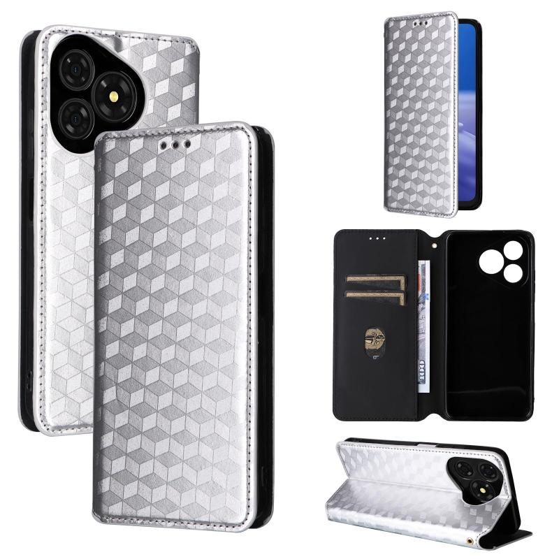For Ulefone Note 19 Cubic Grid Texture Flip Leather Phone Case(Silver)