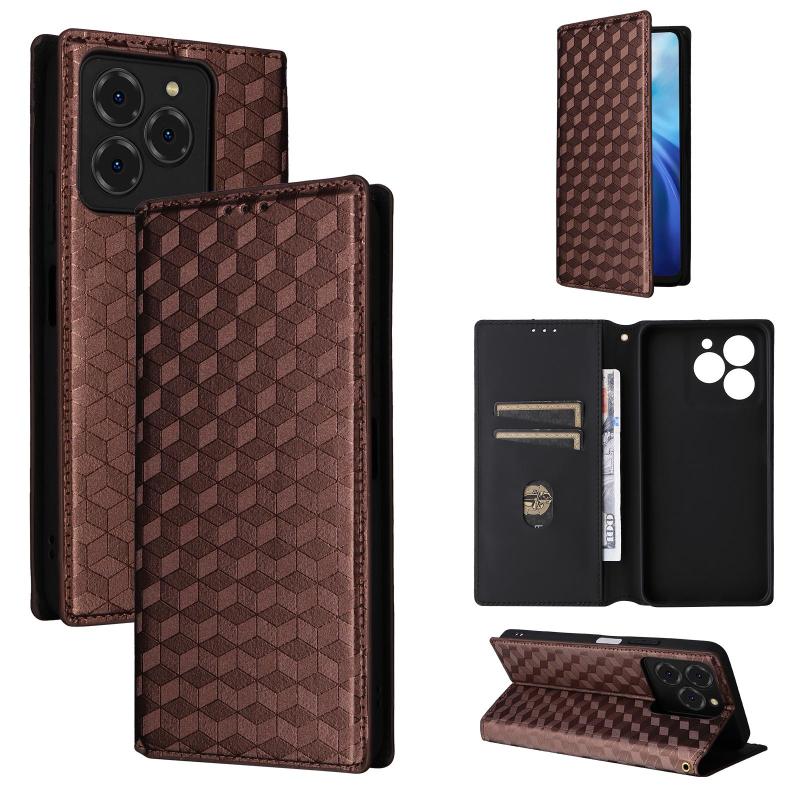 For Ulefone Note 20 Pro Cubic Grid Texture Flip Leather Phone Case(Brown)
