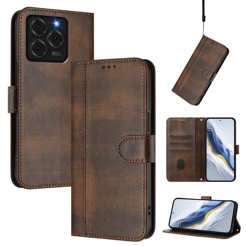 For Ulefone Note 20 Pro Line Splicing Buckle Retro Leather Phone Case(Brown)