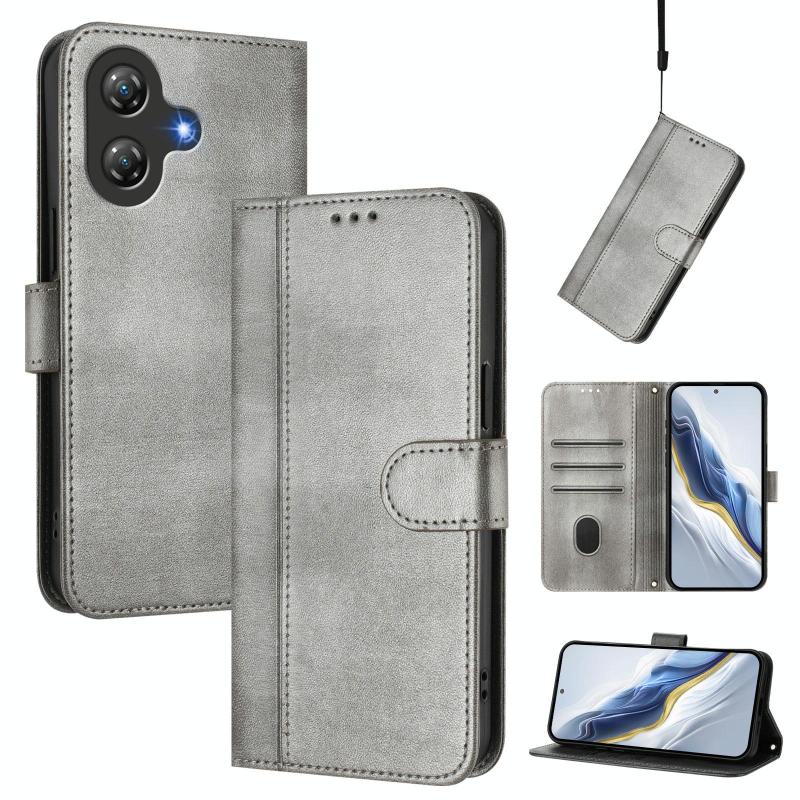 For Ulefone Note 21 Line Splicing Buckle Retro Leather Phone Case(Grey)