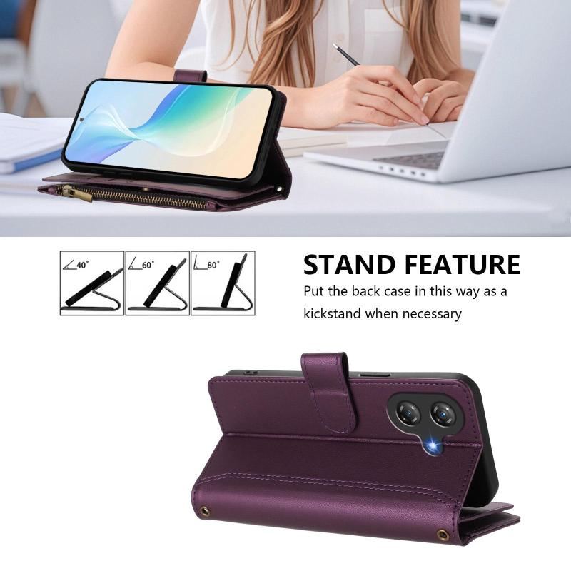 For Ulefone Note 21 Magnetic Closure 9 Card Slots Zipper Leather Case with Hand Strap(Purple)