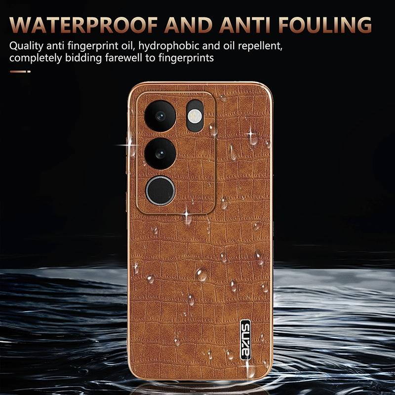 For vivo S17 / S17 Pro / S17t AZNS Electroplated Frame Crocodile Texture Full Coverage Phone Case(Blue) (AZNS)