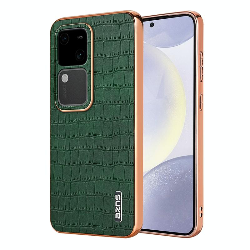 For vivo S18 / S18 Pro AZNS Electroplated Frame Crocodile Texture Full Coverage Phone Case(Green) (AZNS)