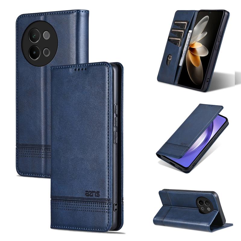 For vivo S18e AZNS Magnetic Calf Texture Leather Phone Case(Dark Blu) (AZNS)