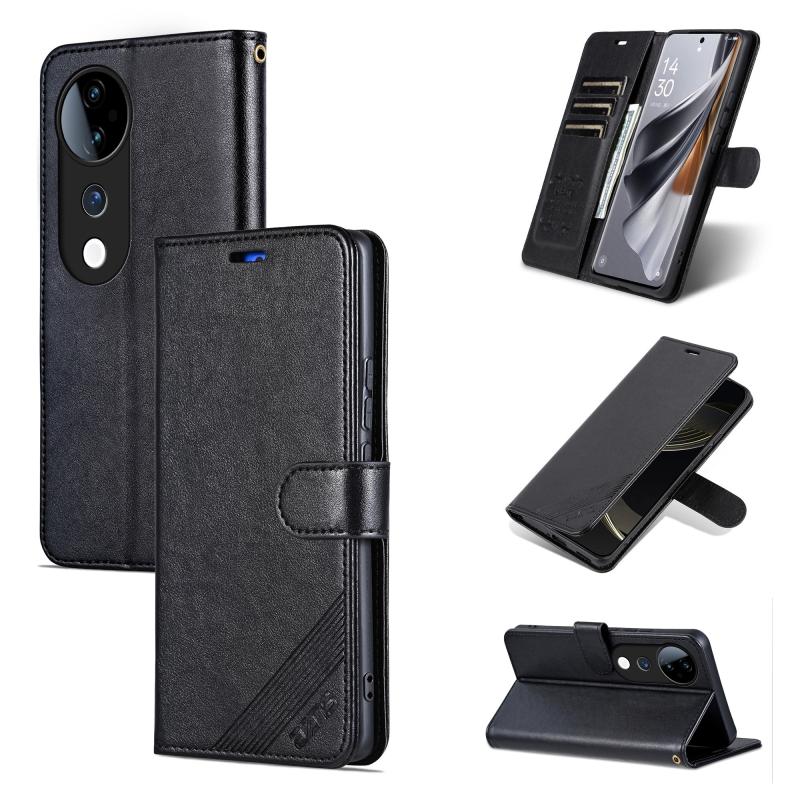 For vivo S19 AZNS Sheepskin Texture Flip Leather Phone Case(Black) (AZNS)