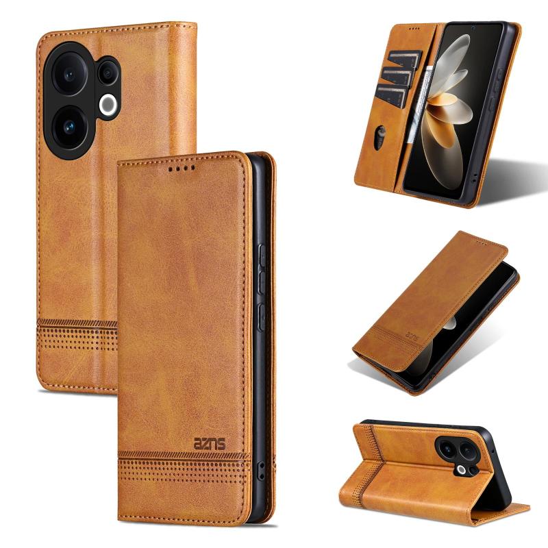 For vivo S30 AZNS Magnetic Calf Texture Leather Phone Case(Light Brown) (AZNS)