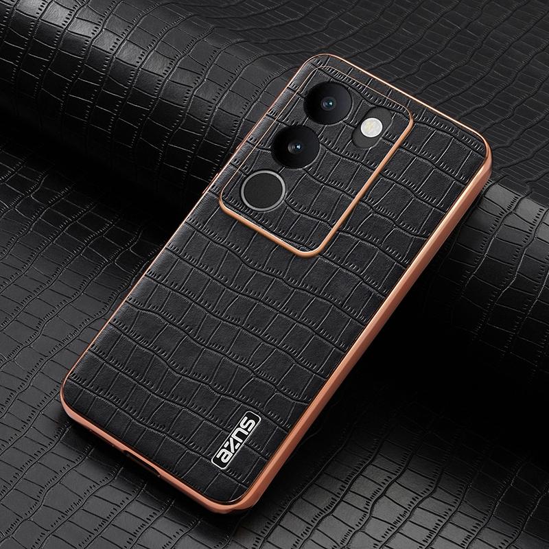 For vivo V29 / V29 Pro AZNS Electroplated Frame Crocodile Texture Full Coverage Phone Case(Black) (AZNS)
