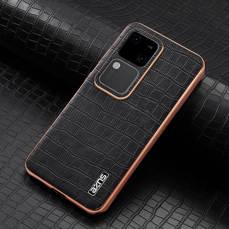 For vivo V30 / V30 Pro AZNS Electroplated Frame Crocodile Texture Full Coverage Phone Case(Black) (AZNS)