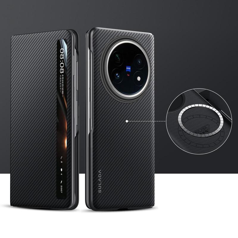 For vivo X Fold5 SULADA Kevlar 600D Texture Smart Window Leather Phone Case(Black) (SULADA)