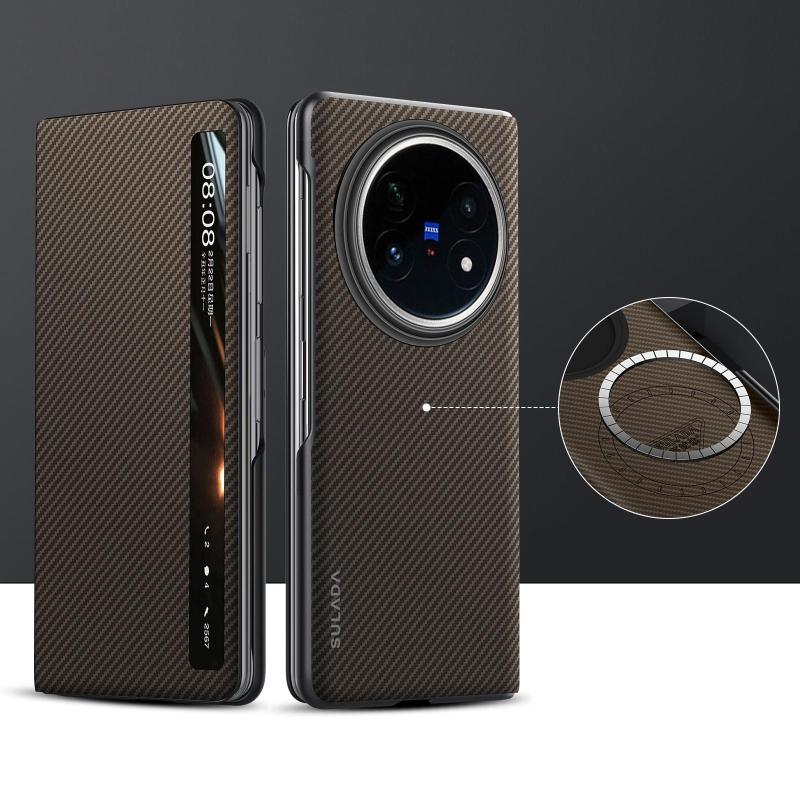For vivo X Fold5 SULADA Kevlar 600D Texture Smart Window Leather Phone Case(Brown) (SULADA)