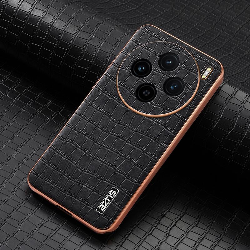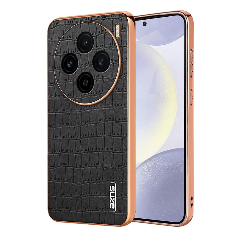 For vivo X100 5G AZNS Electroplated Frame Crocodile Texture Full Coverage Phone Case(Black) (AZNS)