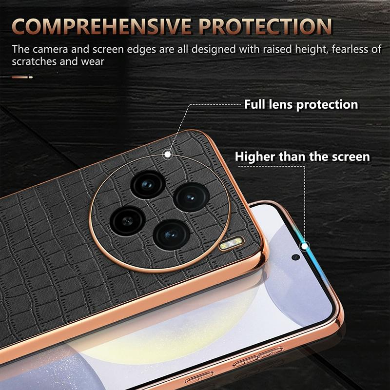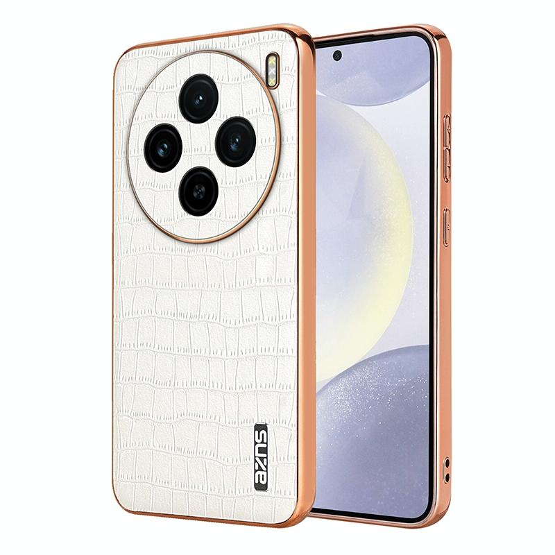 For vivo X100 5G AZNS Electroplated Frame Crocodile Texture Full Coverage Phone Case(White) (AZNS)