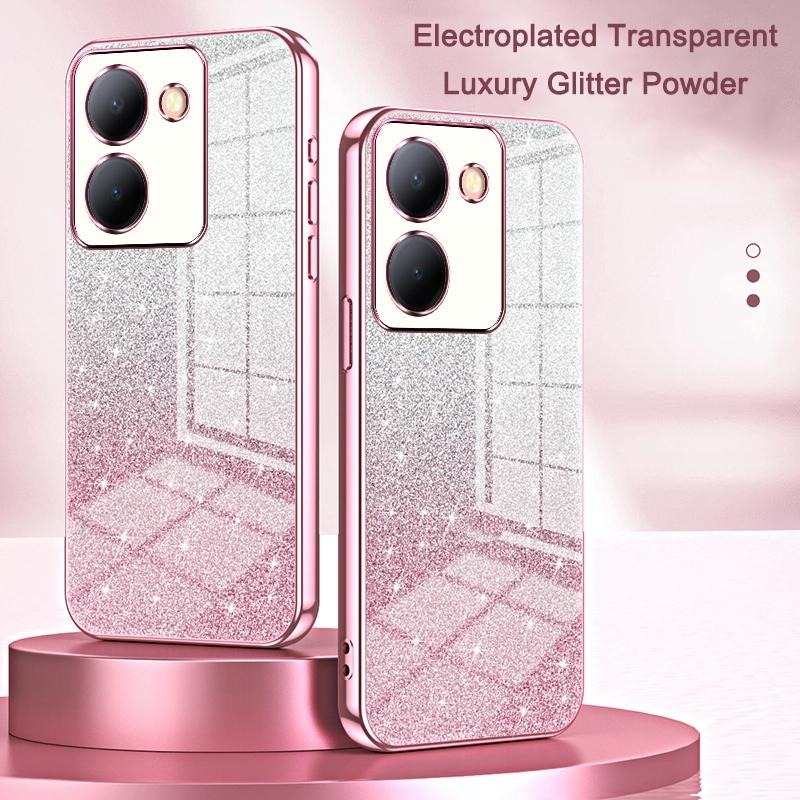For vivo X100 Pro Gradient Glitter Powder Electroplated Phone Case(Transparent) (imak)