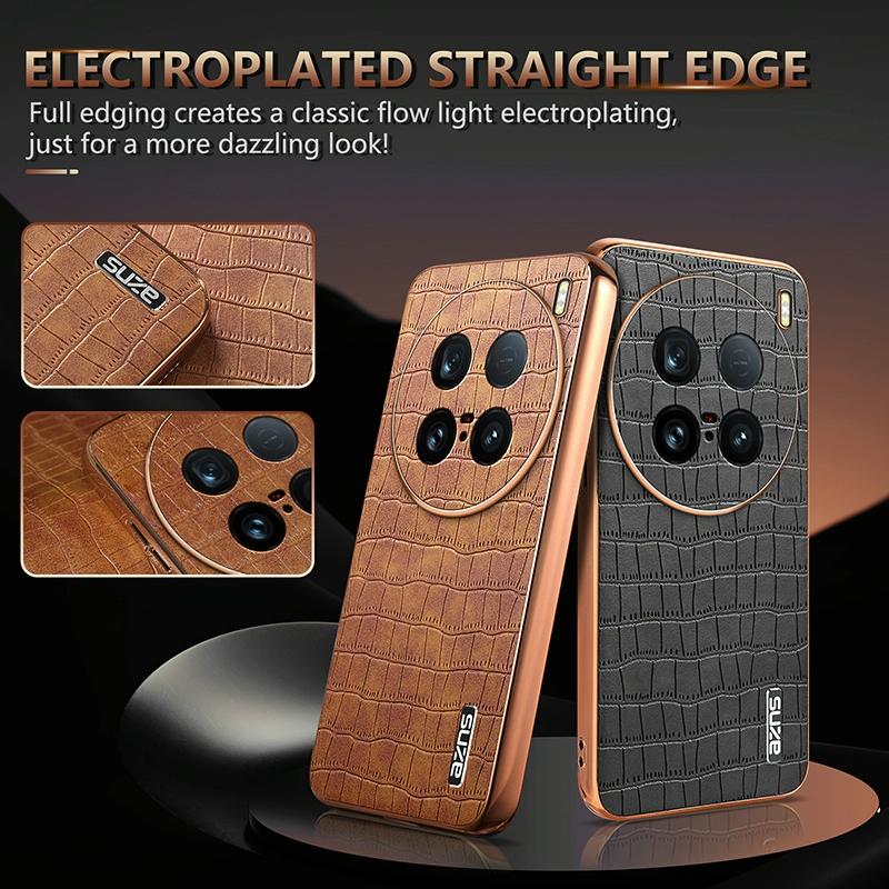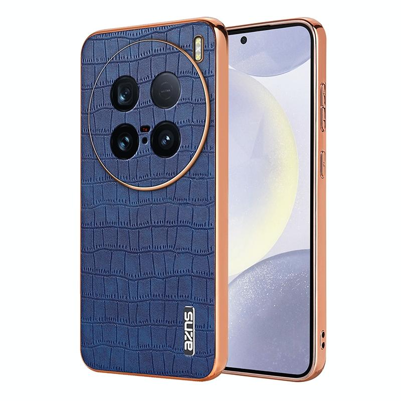 For vivo X100 Ultra AZNS Electroplated Frame Crocodile Texture Full Coverage Phone Case(Blue) (AZNS)