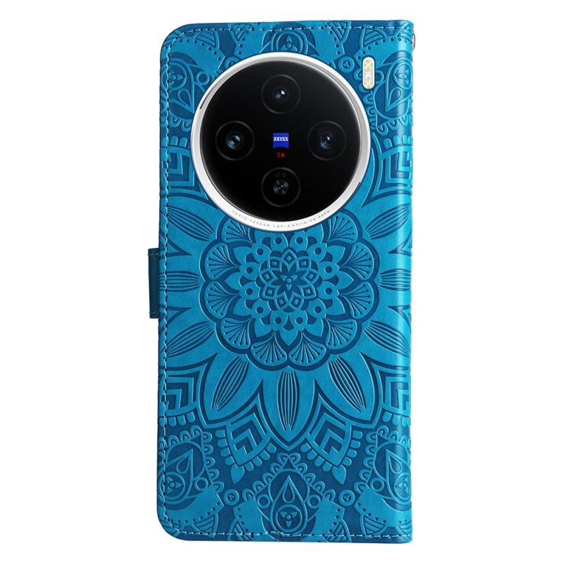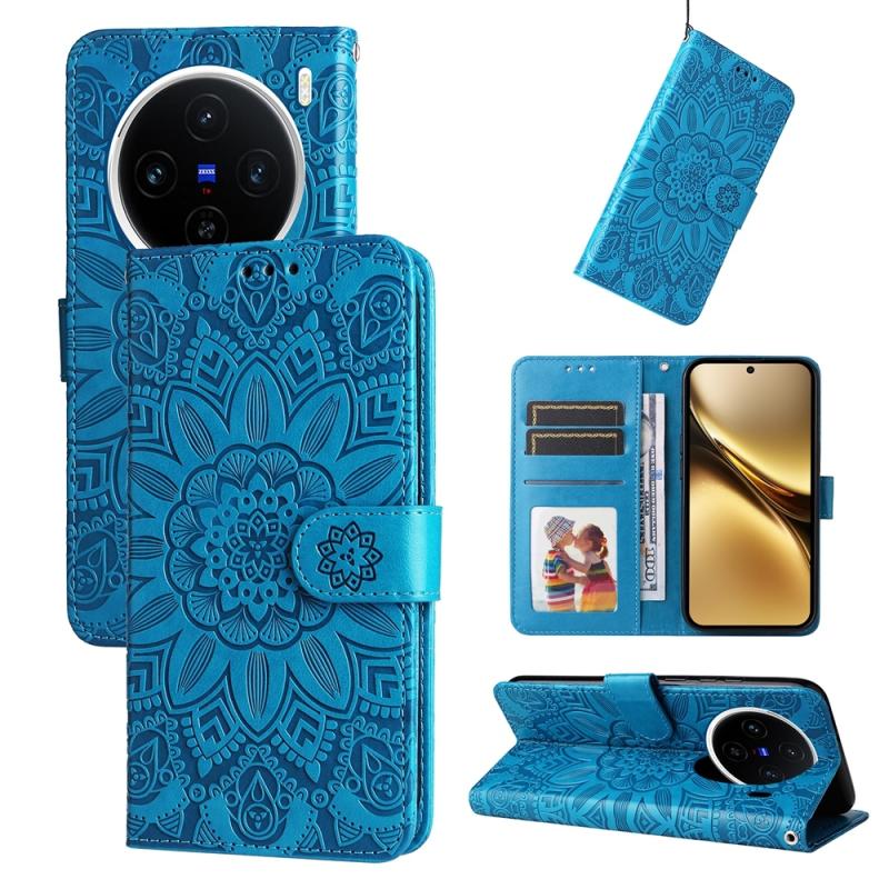 For vivo X200 Embossed Sunflower Leather Phone Case(Blue)