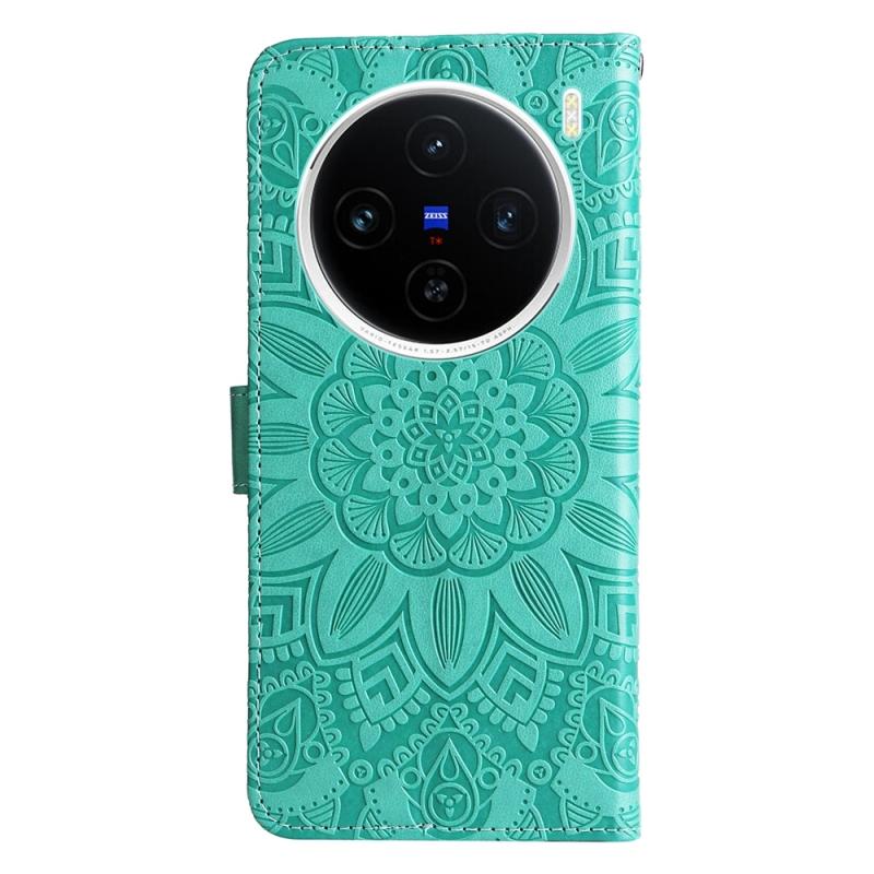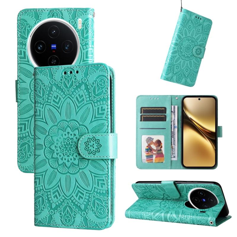 For vivo X200 Embossed Sunflower Leather Phone Case(Green)