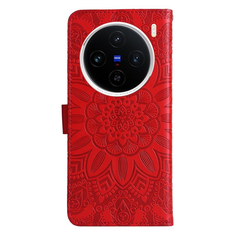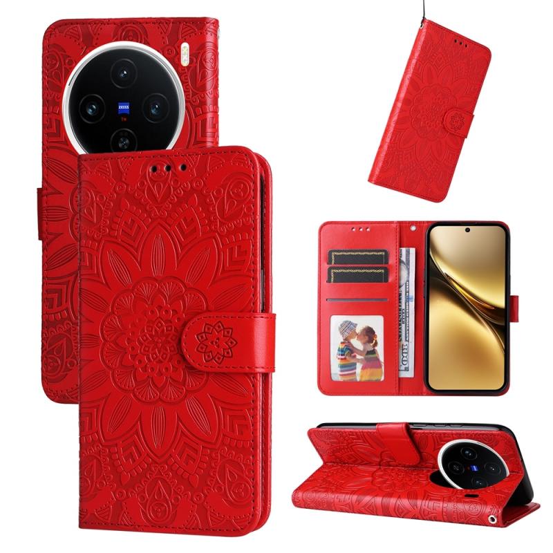 For vivo X200 Embossed Sunflower Leather Phone Case(Red)